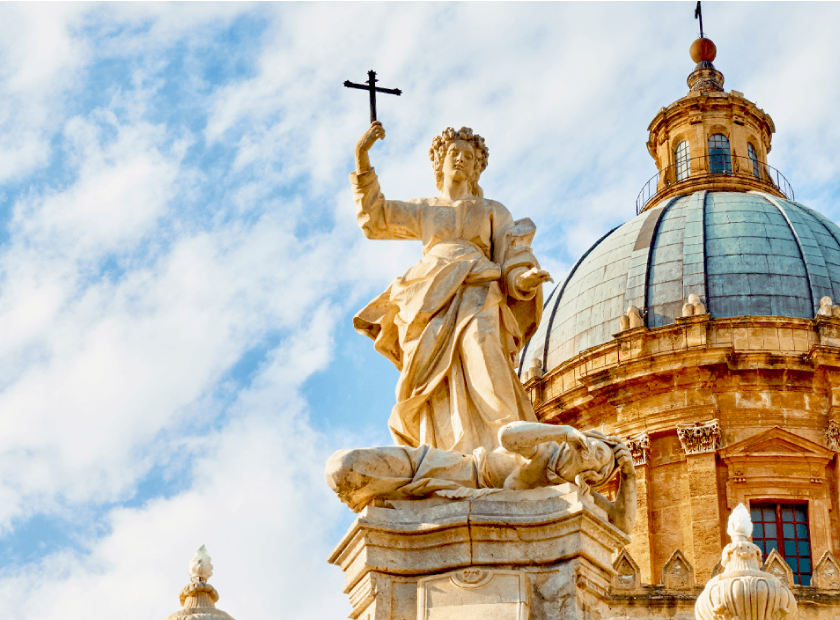 Santa Rosalia è la santa patrona della città di Palermo, nel 1624 la peste colpì Palermo e, dopo la sua apparizione, fu portata in processione e la città fu salvata dalla peste.